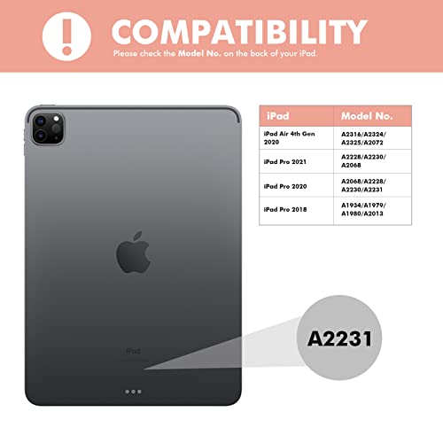 ⌨️【Compatibilità】La tastiera dell'iPad è progettata per iPad 10,9 e 11 pollici, che è compatibile con iPad Air 5a generazione 2022 (A2588 / A2589 / A2591), iPad Air 4a generazione 2020(A2316/A2324/A2325/A2072), iPad Pro 11 pollici 2022 (A2759/A2435/A2761/A2762), iPad Pro 2021 (A2228/A2230/A2068), iPad Pro 2020 (A2228/A2068/A2230/A2231), iPad Pro 2018 (A1980/A2013/A1934/A1979). ✘ Nota: Controllare il logo "Axxxx" sul retro dell'iPad prima dell'acquisto.
