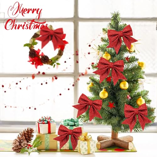LIVESTN 12 Pezzi 18 x 13 cm Fiocchi Natalizi Glitterati Fiocchi per Albero di Natale Fiocchi per Decorazioni di Natale Albero di Natale Ghirlanda Scatole Regalo Bomboniere Capodanno Fai da Te (Rosso)