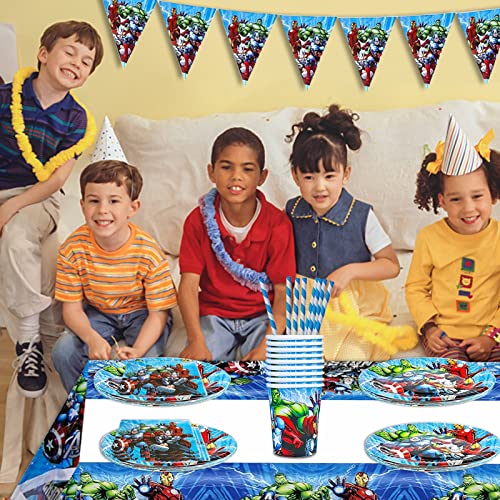 LIVESTN Stoviglie per Feste di Compleanno, 52 Pezzi Kit Avengers Stoviglie per Feste Supereroi Avengers Stoviglie de Compleanno con Piatti, Tovaglia, Tazze e Tovaglia Festa di Compleanno Stoviglie