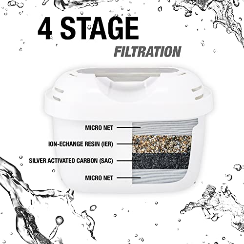 Design premium con grande capacità totale di 4,2 litri, lavabile in lavastoviglie e con coperchio intelligente per una facile ricarica. 1 cartuccia filtro durerà 30 giorni.
