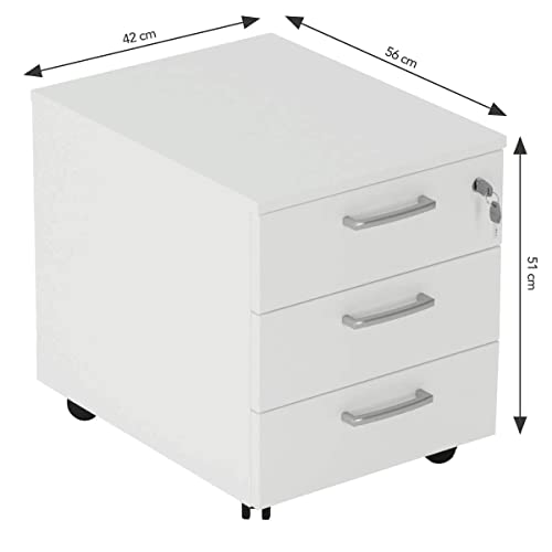 One Living Cassettiera da Ufficio con Rotelle e Tre Cassetti - Montaggio Facile (L 42 x P 56 x H 51 cm, Bianco)