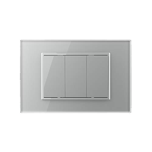 LIVOLO Interruttore doppio comando grigio a 3 pulsanti per uso domestico, 110-250V, pannello in vetro temperato, 900101515