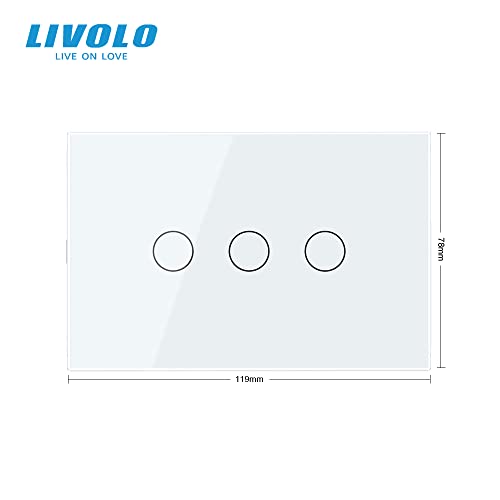 LIVOLO Interruttore della Luce con Indicatore LED Touch Switch con Pannello in Cristallo Toccare Interruttore a parete per Illuminazione Domestica,3 Gang 2 Way,C903S-11