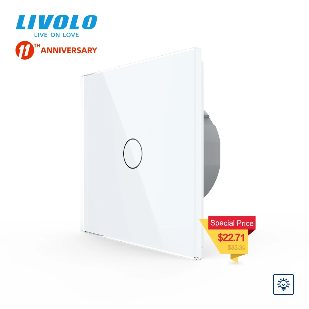 Livolo EU Standard Dimmer Wall Switch,AC 220~250V, Crystal Glass Panel, 1Gang 1 Way Dimmer,VL-C701D-1/2/3/5,no logo