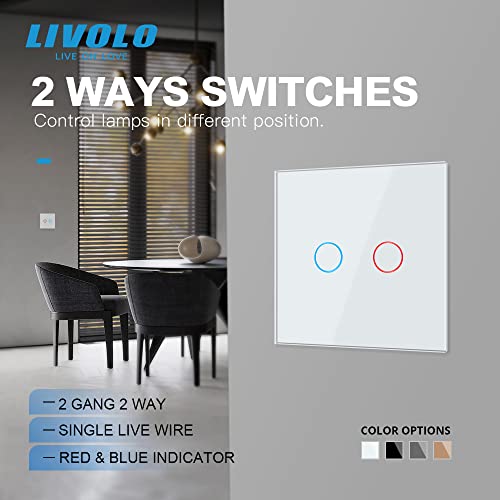 Livolo EU standard Interruttore tattile va e arriva 2 pulsanti touch screen vetro di lusso pannello di vetro, Bianco, VL-C702S-11-A