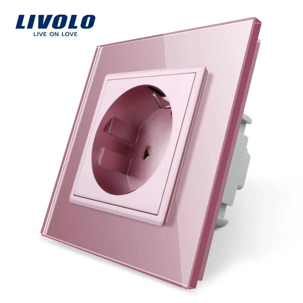 Livolo EU Standard 16A Power Socket, colorful Crystal Glass Panel, AC 110~250V 16A Wall Power Socket,EU power outlet