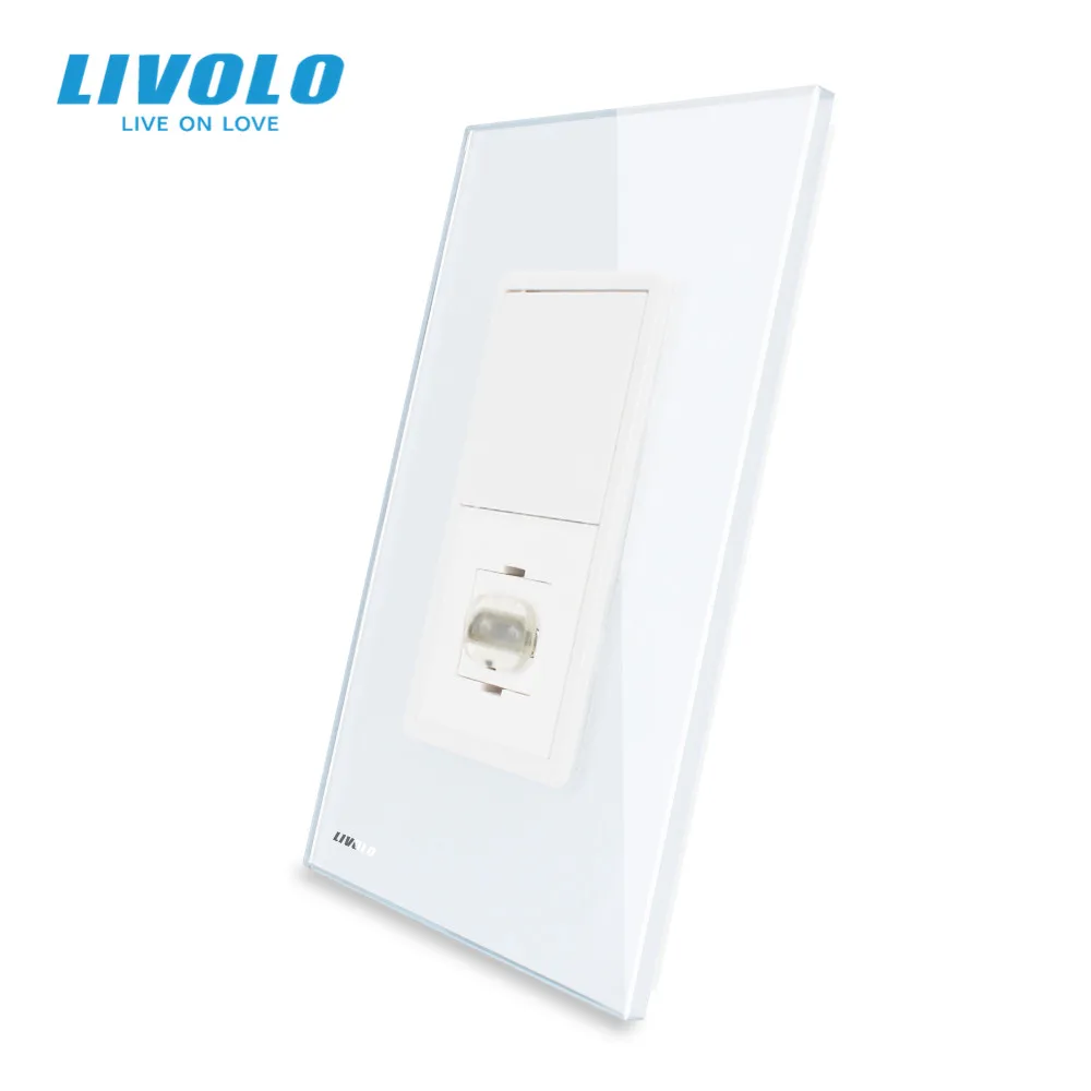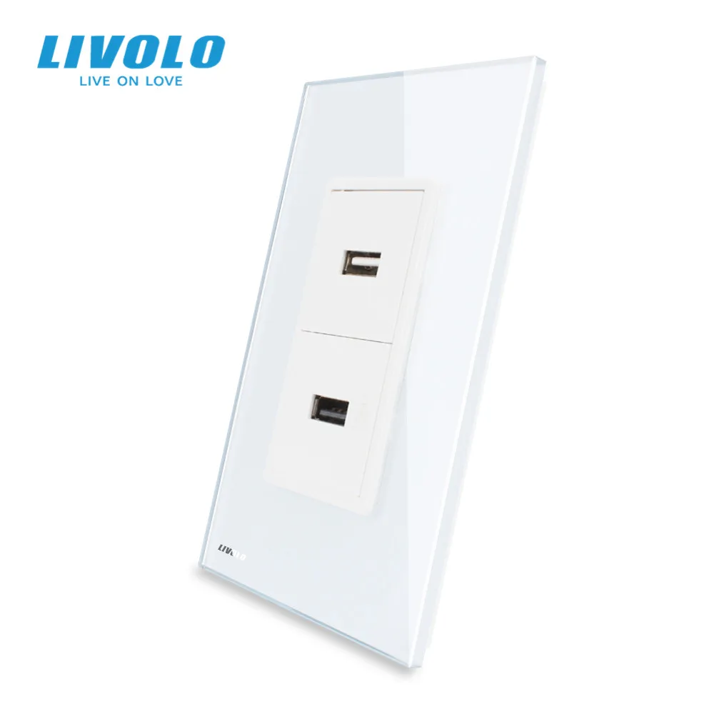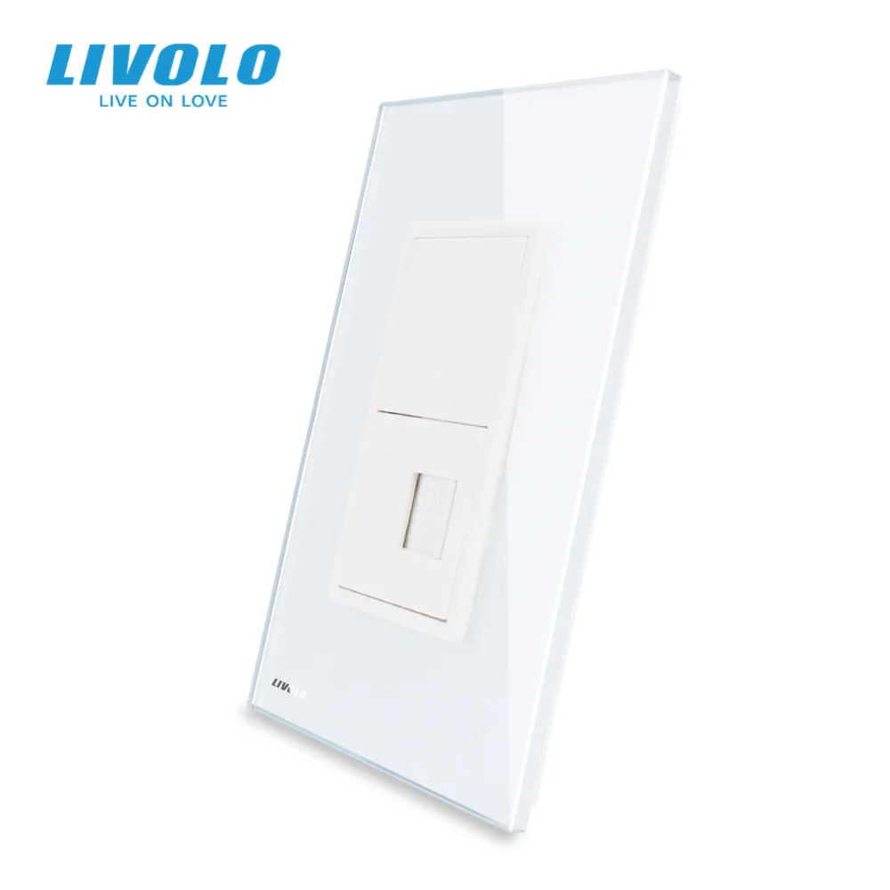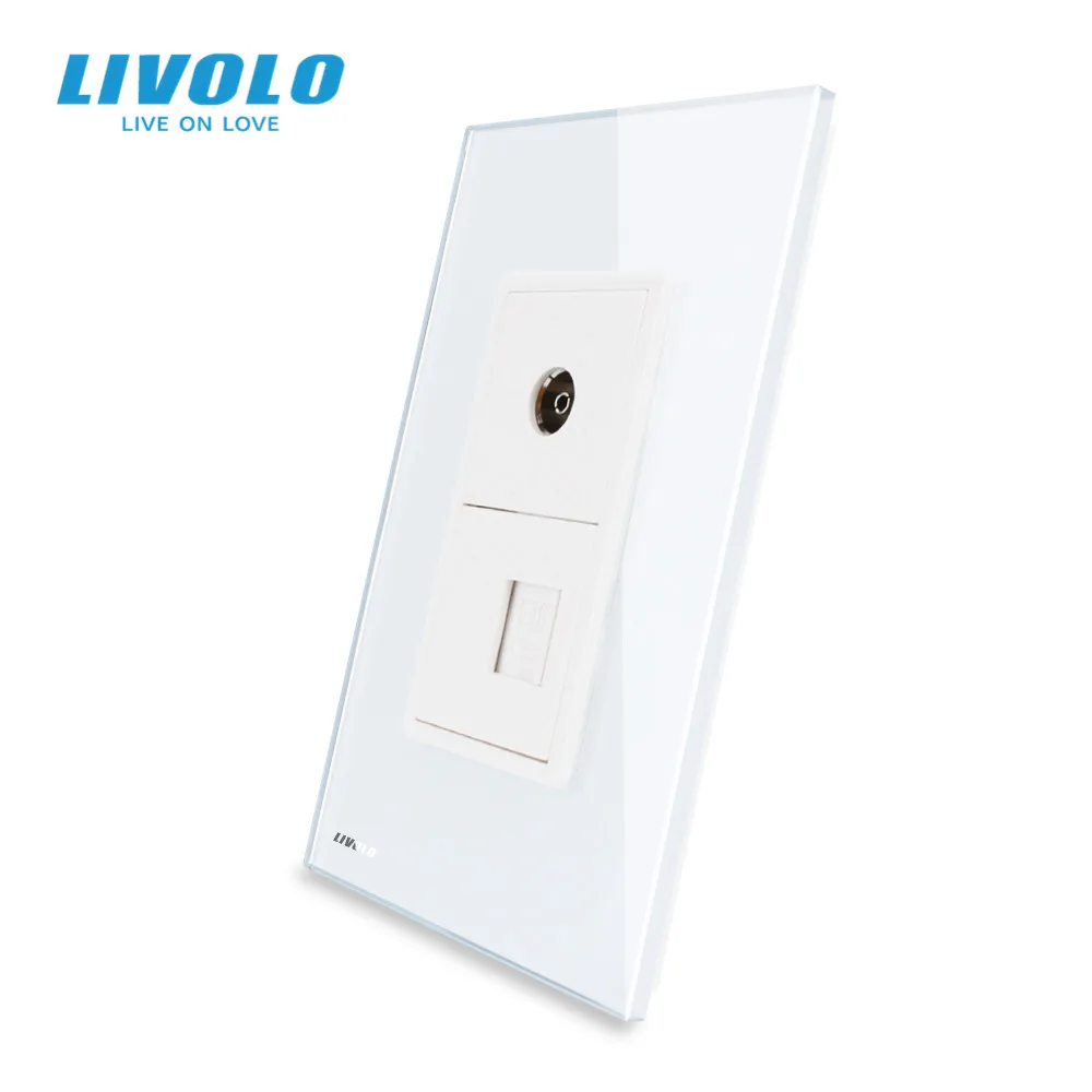 Livolo US Standard Satellite TV Power Socket, HDMI,com,tel,video plugs,White Crystal Glass,usb,audio socket