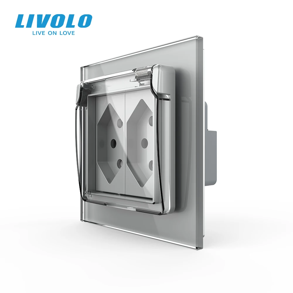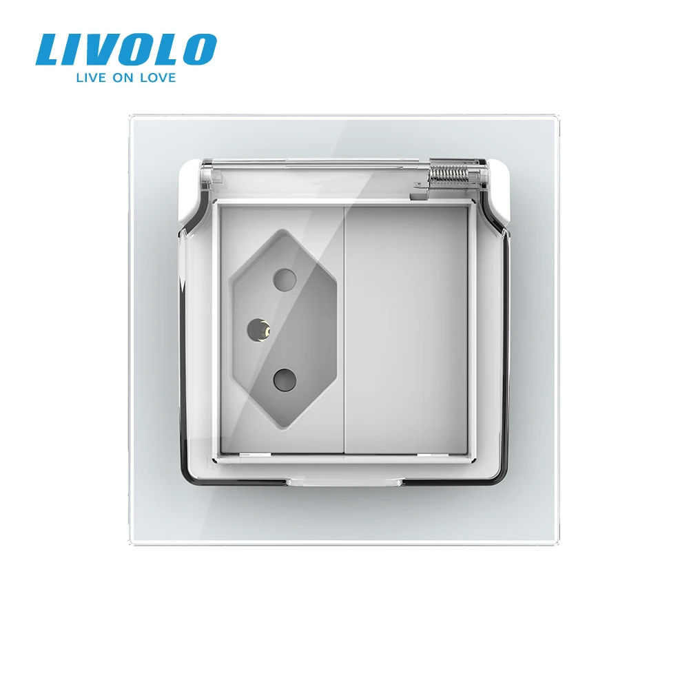 Livolo Swizss Standard Power Socket,Crystal Glass Panel,swizerland plugs, with Waterproof Cover,1/2 gang plugs