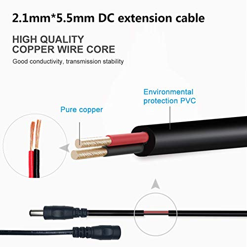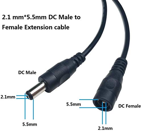 Liwinting 2 Pezzi 1m Cavo di Prolunga DC Maschio a Femmina Cavo di Alimentazione del Connettore 12V 2,1 mm x 5,5 mm per Adattatore di Potenza, LED, Fotocamera CCTV Potenza, Monitor e più - Nero