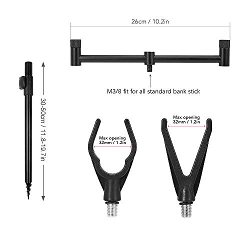 Questo set include segnalatore di abboccata, swinger, supporto per canna da pesca, supporto per canna da pesca, barra per segnalatore di abboccata (lunghezza: set 1/2: 26 cm;
