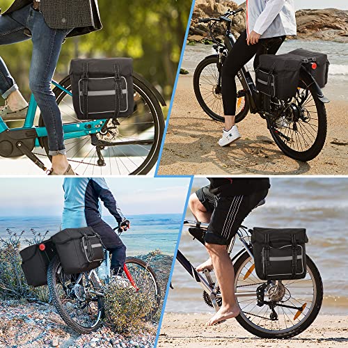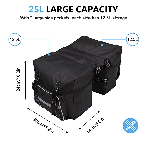 Lixada Borsa Doppia per Bicicletta Posteriore, Borsa Bici Posteriore Cremagliera con Striscia Riflettente Grande Capacità Borse Bici Posteriore Impermeabile per Bici da Strada MTB