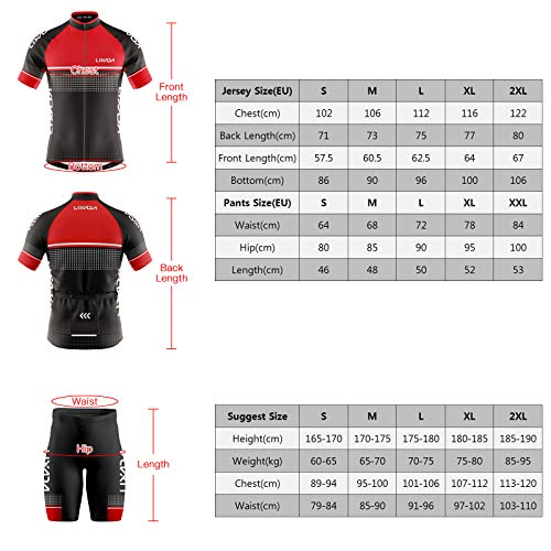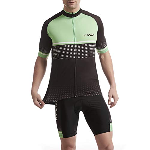 Lixada Maglia da Ciclismo da Uomo Traspirante Set Completo da Ciclismo Asciugatura Veloce Manica Corta e Pantaloncini con Cuscino Imbottito in Schiuma Abbigliamento MTB, S-2XL