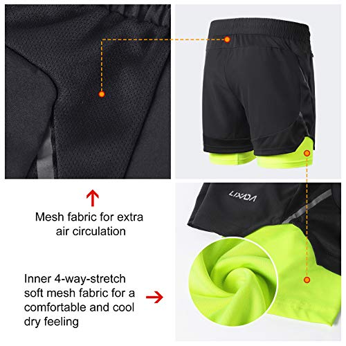 Lixada Pantaloncini da Running da Uomo 2 in 1, Pantaloni Sportivi con Rivestimento più Lungo Traspirante Asciugatura Rapida Cinturino Elastico per Allenamento Attivo Esercizio Jogging Maratona