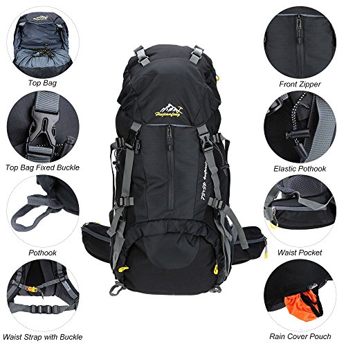 Lixada Zaino da Trekking Zaini da Escursionismo 50L Impermeabile Sport Trekking Escursioni Campeggio Viaggio Arrampicata Zaino con Copertura della Pioggia (Blu) (Nero)