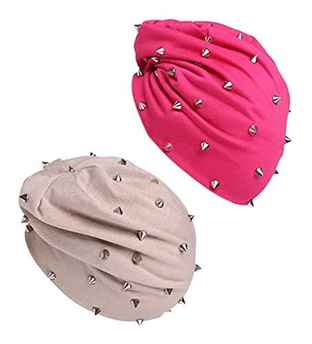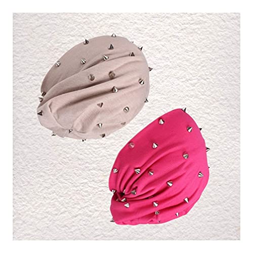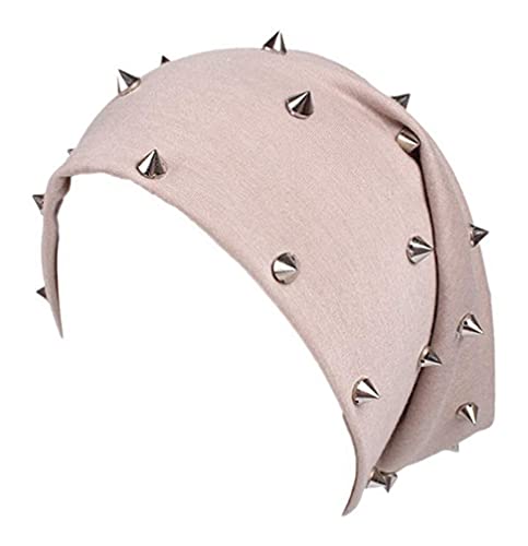 LIXBD 2 pezzi Unisex rivetti Beanie Hat Punk Rock Hiphop Stud Rivetti Stelle Cap Autunno Inverno Cappelli (Beige Rosy) (colore: Beige e Rosy, Dimensioni: 28 x 24 x 1cm)