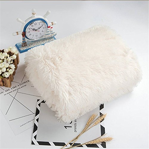 LIYINGKEJI Super Soft Long Shaggy Throw Coperta Faux Fur Warm Elegante Accogliente con Coperta Soffici Copriletto Adatto per Letto o Divano, Divano Leggero Coperta 130X160cm (Bianco)