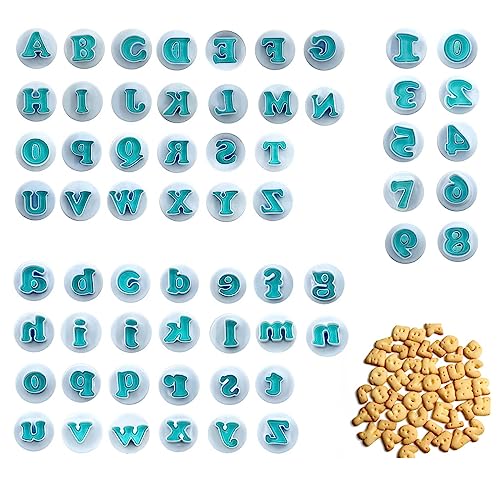 【62PCS Fondant Letter Cutter】Comprende 26 lettere dell'alfabeto dalla A alla Z, 26 lettere dell'alfabeto dalla a alla z, 10 numeri 0-9, in modo da poter scrivere le parole e i numeri che si desidera.