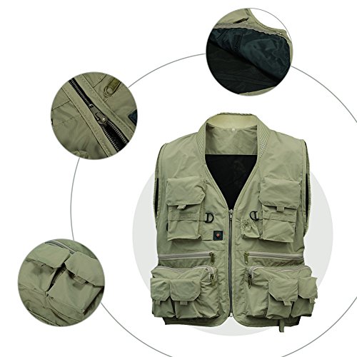 Questo semplice gilet dispone di un design multi-tasche che offre molto spazio per chi lo indossa. Le tasche ben posizionate lo rendono una buona scelta come gilet da pesca, gilet a zaino, gilet per bird watching, gilet safari, giubbotto di tiro, gilet da caccia, gilet di sopravvivenza, gilet per fotografia, gilet da viaggio, gilet di sicurezza, gilet di ricerca all'aperto, ecc.
