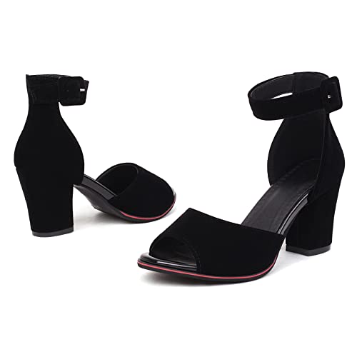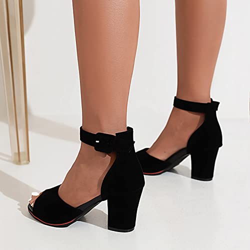 Lizoleor Donna Con Cinturino Alla Caviglia Prom Vestito Tacco A Blocco Peep Toe Estate Sandali Serata Prom Tacco Alto Moda Festa Scarpe Nero Numero 39 EU/40Cn