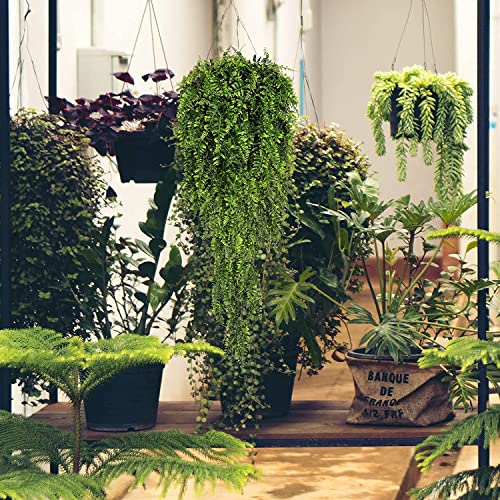 【Cosa ottieni】 Il finto set di piante artificiali contiene 4 pezzi di piante sospese in plastica di felce. L'altezza totale di ogni pianta finta sospesa è di circa 81 cm. La vegetazione lussureggiante aggiunge bellezza infinita alla tua casa tutto l'anno. Ideale per cestini decorativi ovunque.