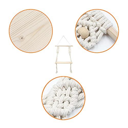 LJCC Mensola Sospesa Rustico, Mensole Legno con Corda, Mensola Sospesa Stile Nordico, Mensola da Parete in Macramè, Mensola a Muro Boho, Fatto a Mano, per Soggiorno, Camera da Letto, Bagno