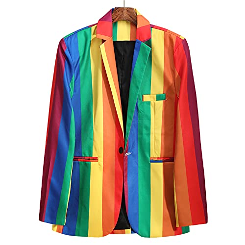LJHH Blazer a Righe Colorate Uomo Giacche Uomo Elegante Invernale Cappotto Giacca Uomo Eleganti Blazer Abiti da Uomo Slim Fit Casual Cerimonia Affari Festa Risvolto Strisce Arcobaleno