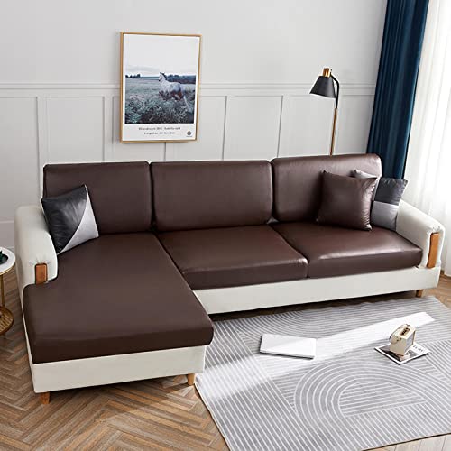 LJQAIZYL Copricuscini per Divano Impermeabile Separati,Copriseduta Divano 3/4/2/1 Posti Copri Cuscino Divano,Copriseduta Divano Pelle Coprisedile Divano con Penisola,Brown-1-seater-X(65-80cm