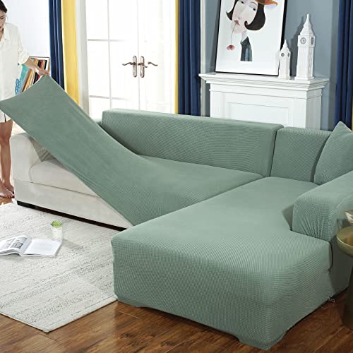 LJQAIZYL Copridivano Elasticizzato a Forma di L,Copri Divano Angolare con Penisola a Destra/Sinistra,Spandex Jacquard Copertura Divano Universali per 1/2/3/4/5 Posti,Green-1seat+2seats
