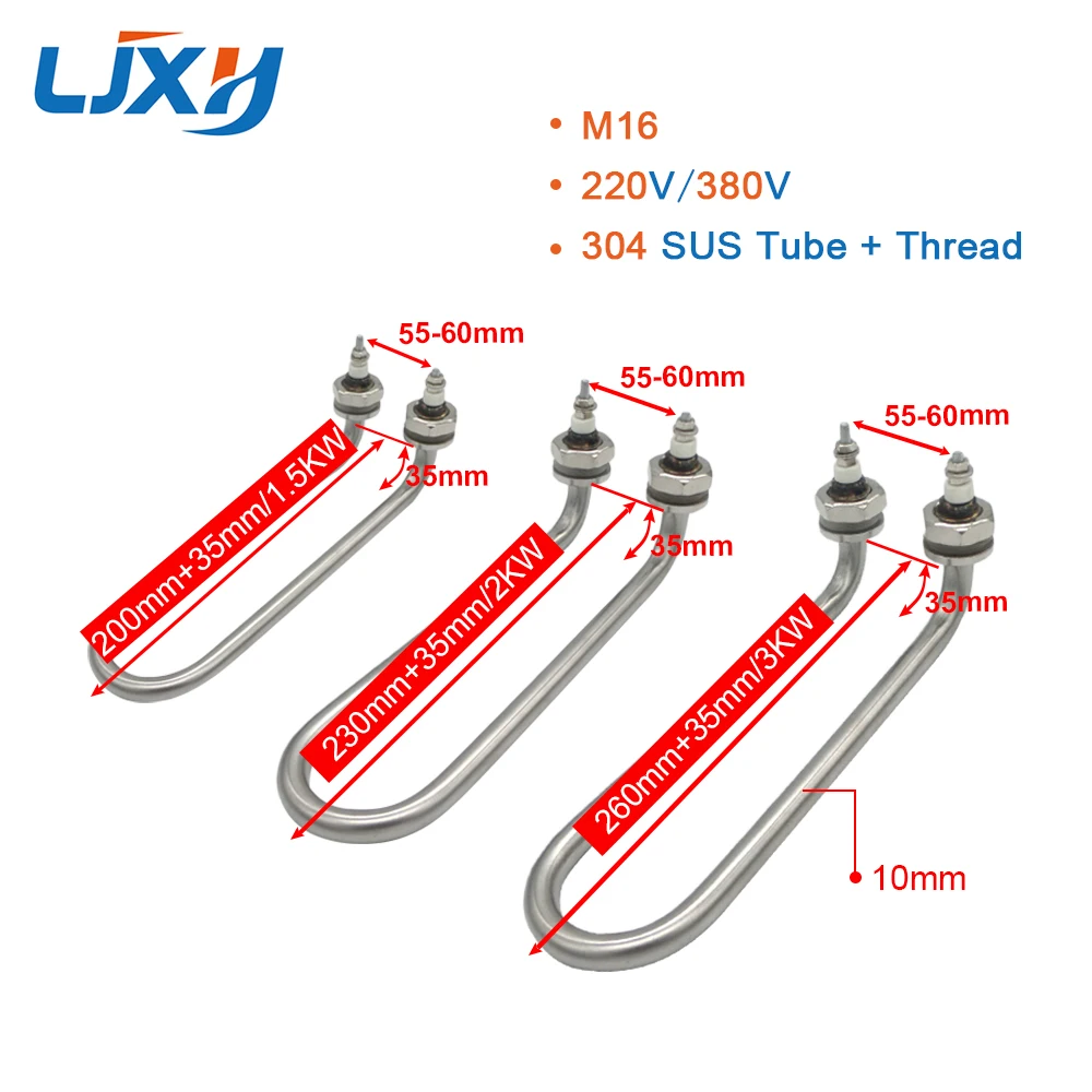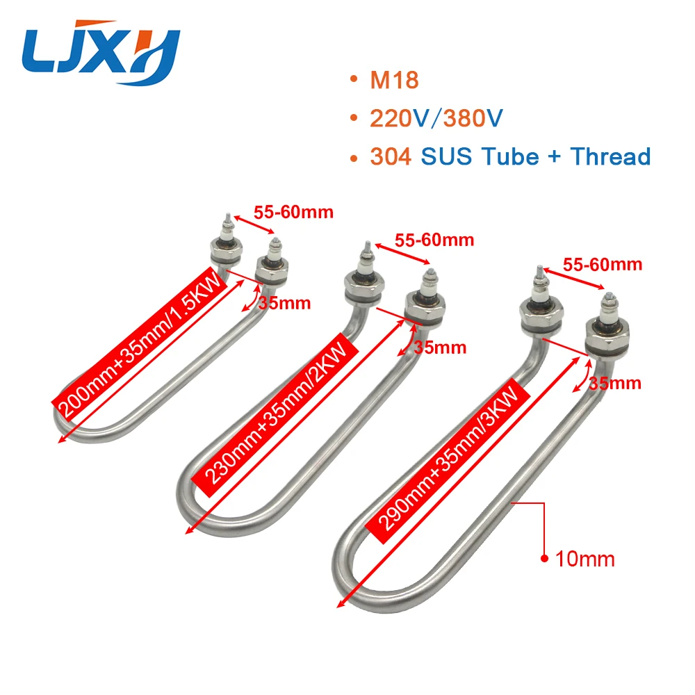 LJXH Bend Single U Water Heating Element. M16/M18 Heaters Thread, Heater for Home Appliances Parts, 1500W/2000W/3000W