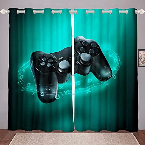 LKCD Tenda Oscuranti Termica Gamepad Controller Di Gioco Moderno Verde 140X160Cm Moderne Casa Interni Camere Da Letto Salotto Bambini Cucina Stampa 3D Tenda Con Anelli - 2 Pannelli