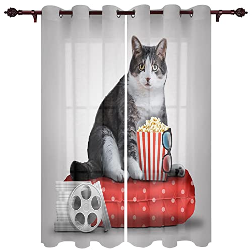 LKCD Tende Camerette Carino Animale Gatto Film 140X160Cm Bambini Oscuranti 2 Pannelli Termiche Isolanti Casa Finestre Moderne Soggiorno Camera Da Letto/Cucina/Sala Riunioni