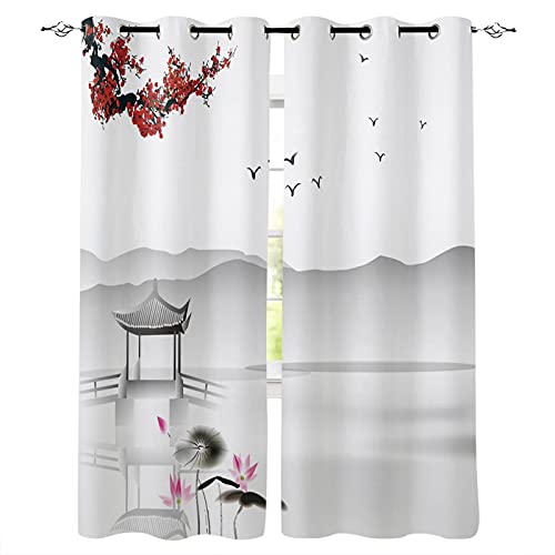 LKCD Tende Oscuranti Stile Cinese Paesaggio Fiore Di Pruno Scenario Con Occhielli Tende Termiche Isolanti Per Interni E Cameretta Bambini Tende Moderne Per Soggiorno E Finestre 2 Pannello 280X260CM