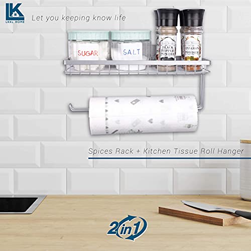LKKL Porta Scottex Rotolo Carta da Cucina da Parete Porta Rotolo Contenitori Spezie Mensola con Ripiano Porta Asciugamani in Metallo Organizzatore 2 in 1 Portaoggetti per Cucina e Bagno - Nichel