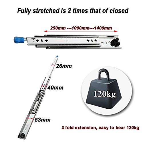 LKLXJ 1 Paio Guide per Cassetti Estrazione Totale, 500 Mm 1400 Mm, Montaggio Laterale, Robusto, Antiruggine, Guide Telescopiche per Tavoli - Guide Scorrevoli Pesanti con Bloccaggio