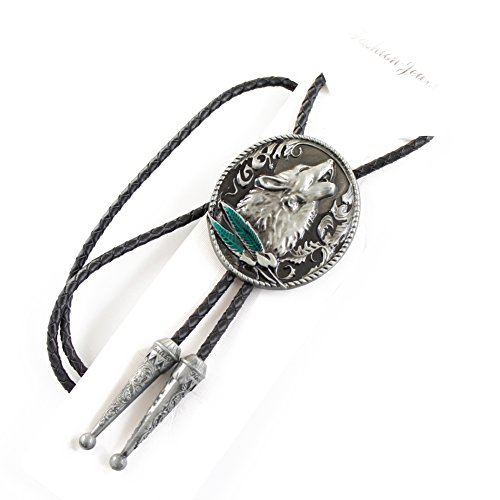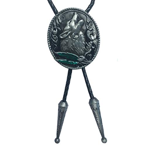 LKMY Cravatta da uomo con lupo in bronzo che ulula al chiaro di luna Cravatta da cowboy occidentale, cravatta in testa di lupo 3D in filigrana
