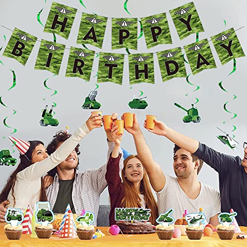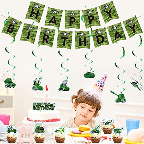 【Design unico】: Le decorazioni per feste di compleanno mimetiche sono le più popolari tra i bambini. Le decorazioni sospese mimetiche 6* sono composte, inclusi aerei, carri armati e soldati vivaci e vivaci.