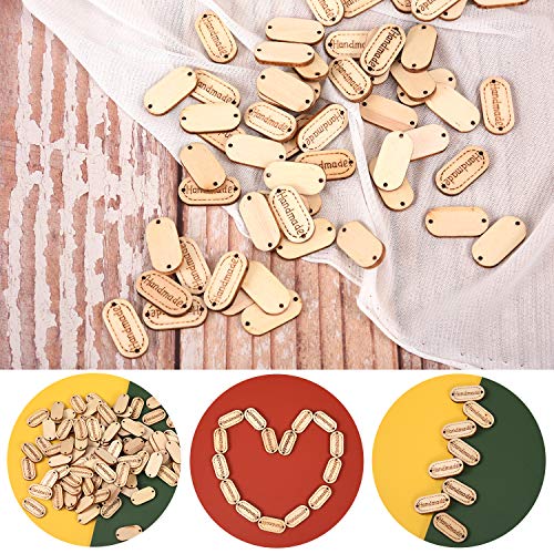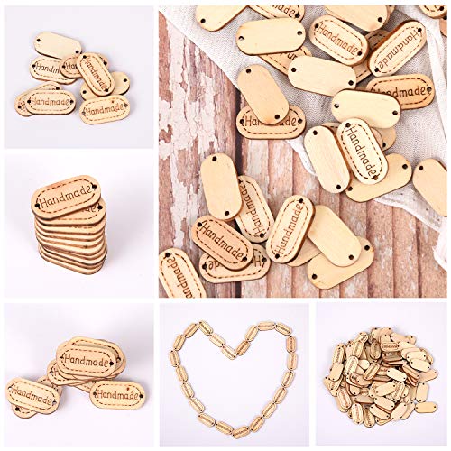 LKYOO 100 Pezzi Etichetta Tag Fatti a Mano in Legno Naturale Bottoni in Legno abbellimenti Ornamenti Decorazioni Artigianali con 2 Fori