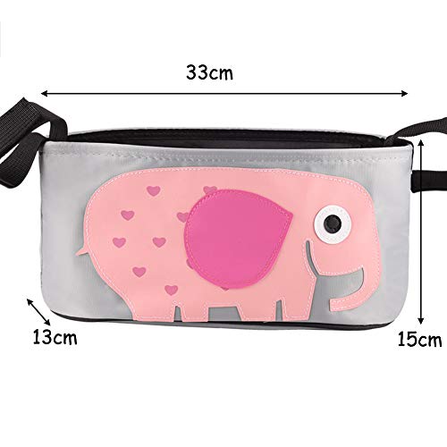 LLMZ Borsa per Passeggino 1PCS Universale Organizzatore di Carrozzine Borsa Organizzatore per Passeggino Sospesa per Tutti Imodelli di Passeggini (Elefante Rosa)