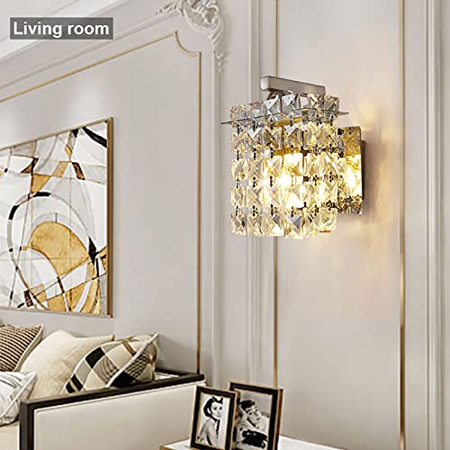 LLSZAHD Applique Lampada da Specchio Bagno di Cristallo Moderna con Tenda in Cristallo K9,E14 Applique da Parete Interno in Cromo,Luce da Parete in Cristallo Illuminazione del Comò Camera da Letto