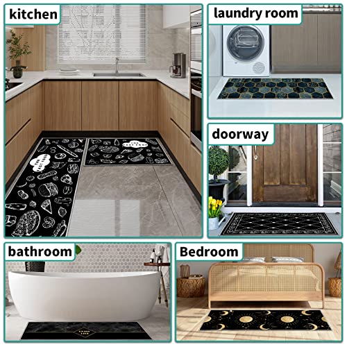 LLTTEER Tappetini da cucina 2 pezzi, antiscivolo assorbono acqua e olio per la cucina del corridoio, tappetini da cucina tappetini da cucina set di tappeti zerbino (43 x 75cm+43 x 150 cm, Moon 01)