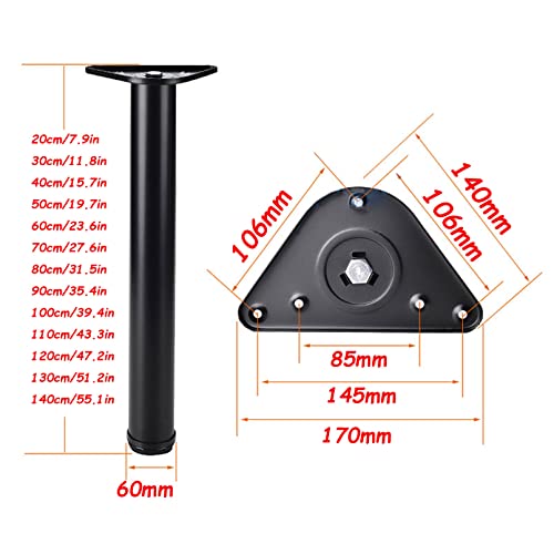 LLXNQ026 Set Di 4 Gambe Regolabili Per Tavolo,Piedi Per Tavolo Da Pranzo,Piedini Per Mobili In Lega Di Alluminio Piedini Per Tavoli,Per Armadio Piano Di Lavoro Colazione Bar (80cm/31.5in,Black)