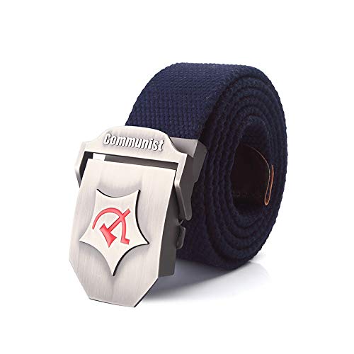 LLZGPZPD Cintura di Tela Uomini E Donne Cintura Canvas Cintura Comunista Fibbia di Lusso Jeans Cinture per Uomo Cintura Tattica Vintage Cinturino Militare in Nylon Maschile, Blu, 130Cm