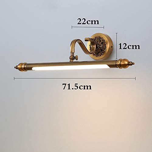 LMAMZ 12W Applique da Specchio Bagno Vintage Lampada per Trucco Classico LED con Testa Girevole 240° Applique da Parete Camera da Letto Luce per Quadri Metallo Impermeabile (Bronzo),71cm/12w