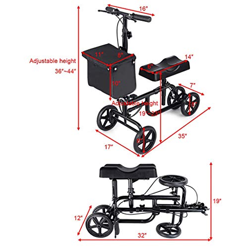 ✔ Manubrio regolabile e piattaforma per le ginocchia, questo camminatore per ginocchia molto leggero ma robusto offre una capacità di carico di 299 libbre (capacità di carico ed è consigliato per bambini e adulti)