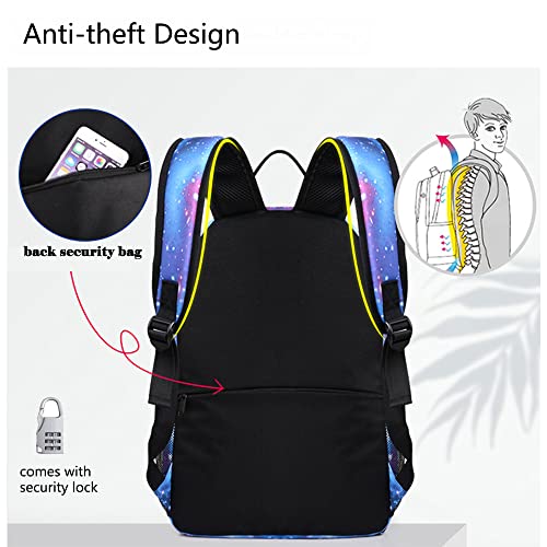 Lmeison - Zaino luminoso a tema cartoni animati Anime con porta di ricarica USB e astuccio con chiusura a chiave, unisex, motivo galassia, adatto per viaggi, scuola e università