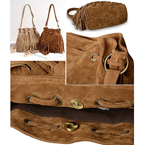 Lmeno Borsa Donna A Spalla Faux Suede frange nappe Corpo Croce Borsa a tracolla borsa secchiello borsa shopper borsa a tracolla Messenger Bag borsa a mano Retro Motto Party Accessori con chiusura lampo