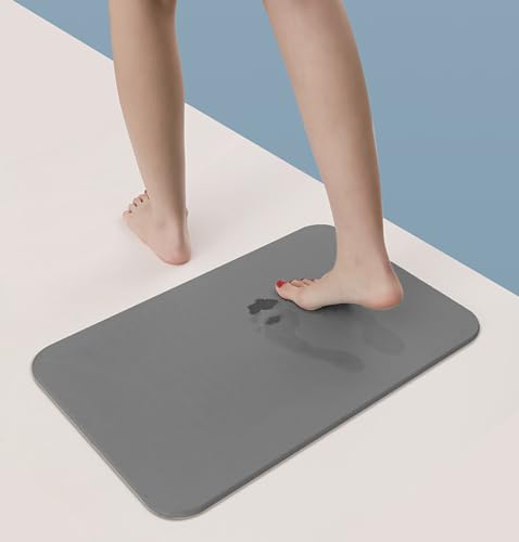 LNGFSH Tappetino da Bagno in Pietra Diatomite Tappeto Assorbente - Tappetino Bagno Antiscivolo - Super Assorbente-Utilizzabile in Bagno,Cucina Grigio Gris (60x39cm)