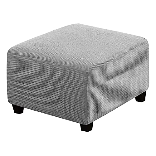 LNIM - Fodera per pouf in tessuto jacquard elasticizzato morbido, con fondo elastico, traspirante, antiscivolo, lavabile in lavatrice (grigio chiaro)