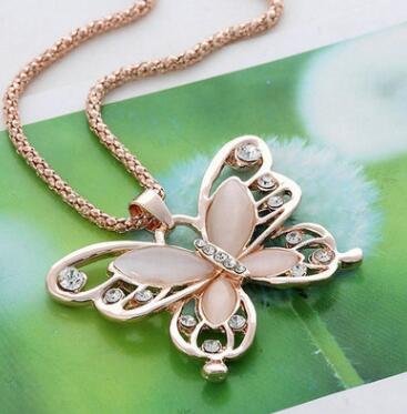 LnLyin collana a catena con ciondolo a forma di farfalla, in oro rosa, gioiello lungo da donna.
