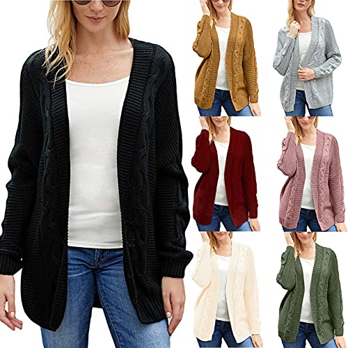 Loalirando Cardigan Donna Lungo Autunnale e Invernale Tinta Unita Maglieria Largo Donna Elegante Cappotto Lavorato a Maglia Taglia Uncia (Nero, Taglia Unica)
